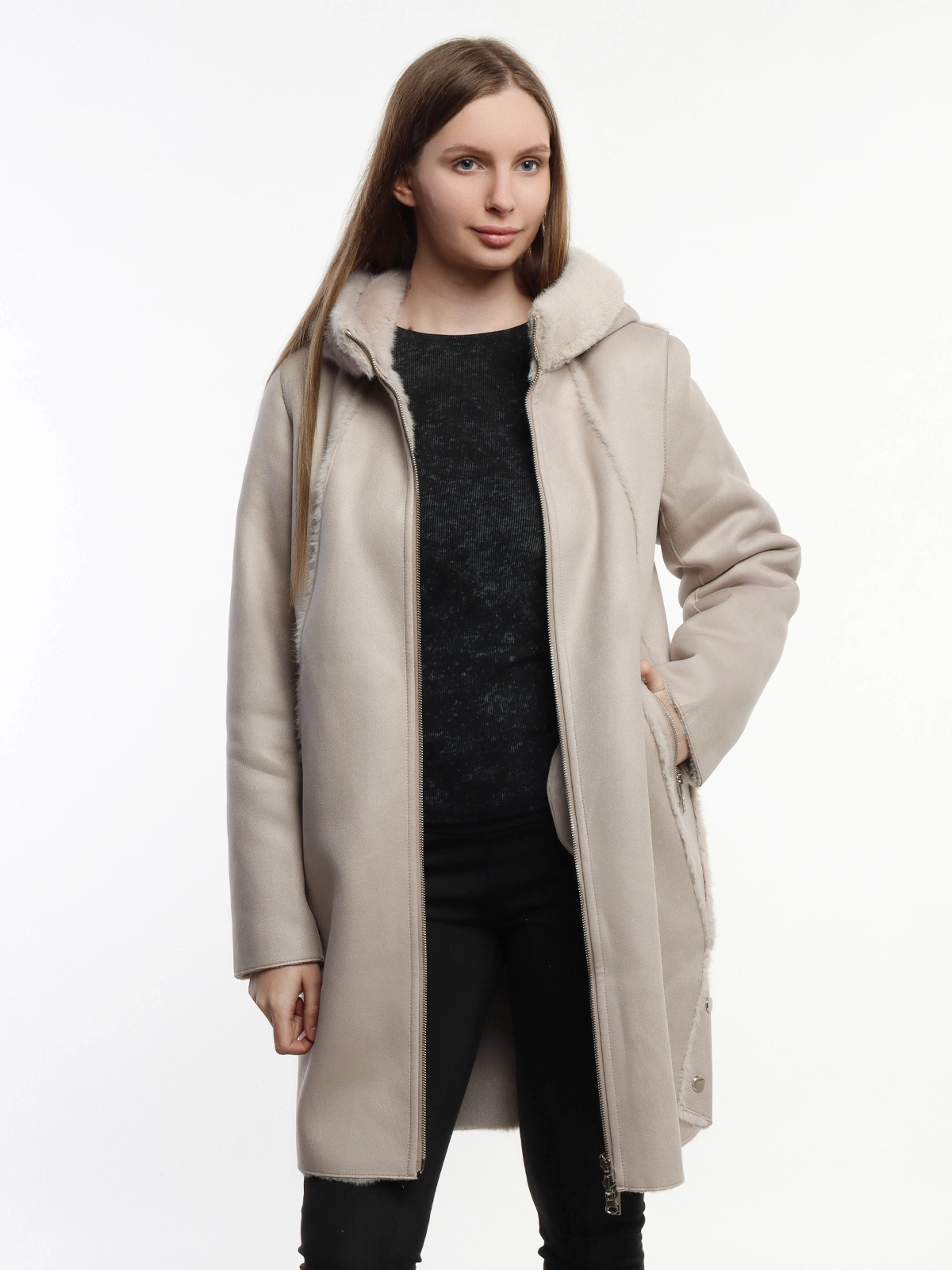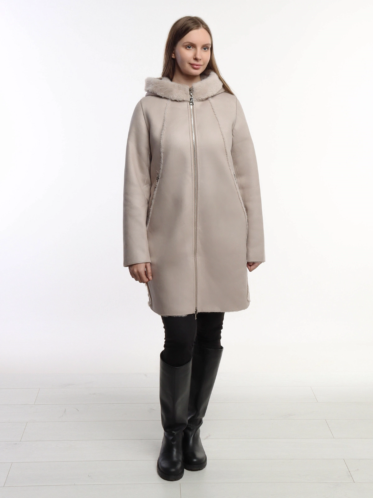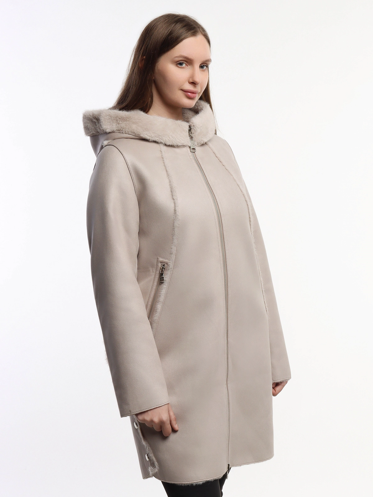 - Двусторонний дизайн: позволяет менять стиль по настроению – одна сторона с гладкой фактурой, другая с мягким меховым покрытием.
