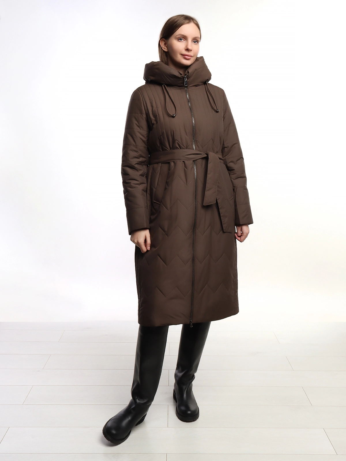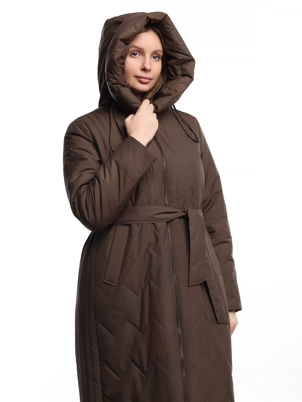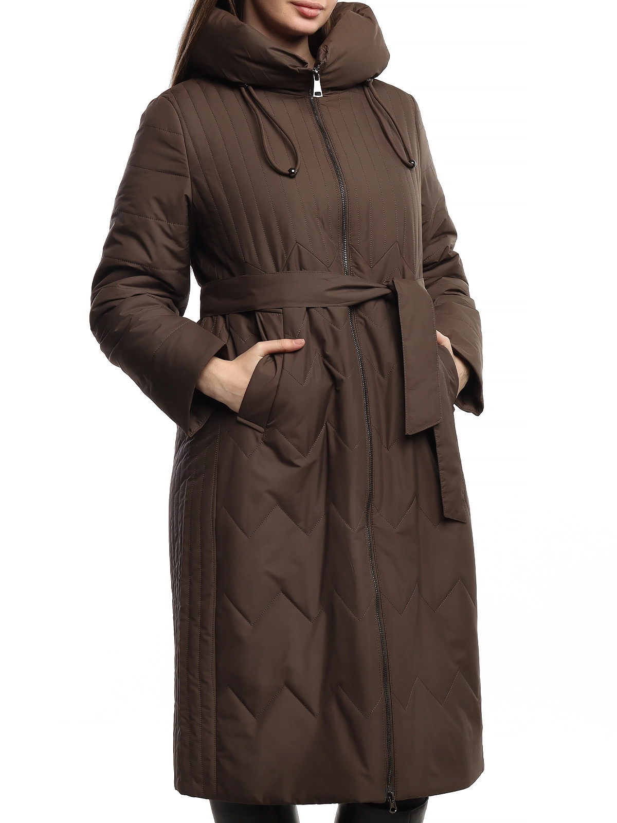 Пальто застегивается на молнию, а пояс в комплекте позволяет подчеркнуть талию и создать элегантный силуэт. Для удобства предусмотрены боковые карманы, в которых можно согреть руки или хранить мелочи.