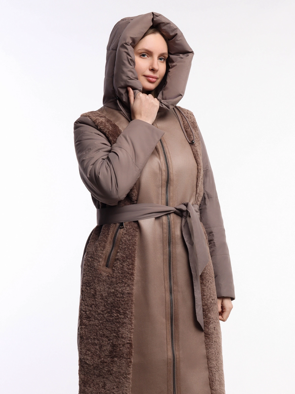 Выполнено из качественного полиэстера с добавлением верблюжьей шерсти, что обеспечивает отличную теплоизоляцию и приятную текстуру. Удлинённый фасон защищает от ветра и холода, а несъёмный капюшон сохраняет тепло головы и шеи.