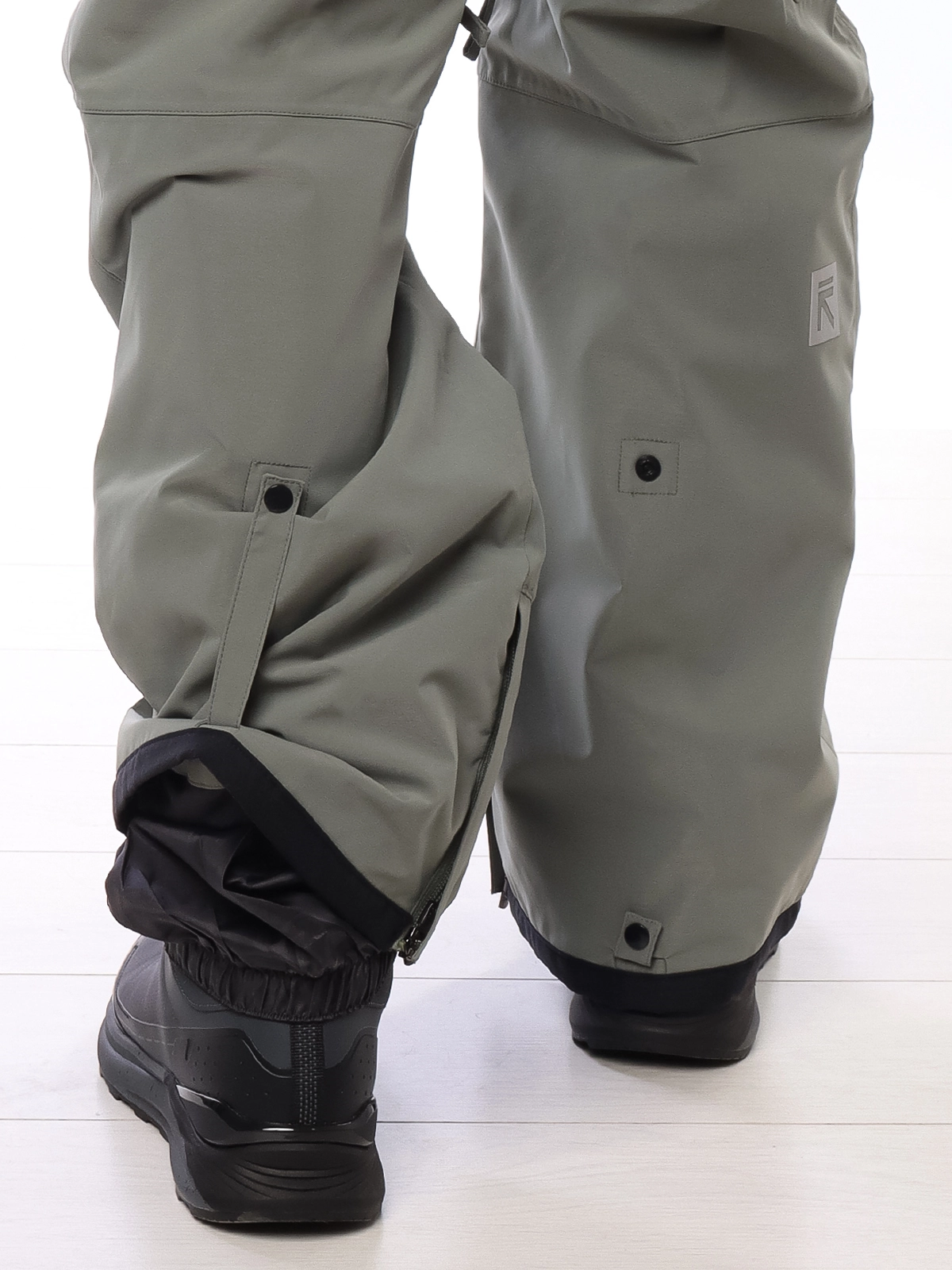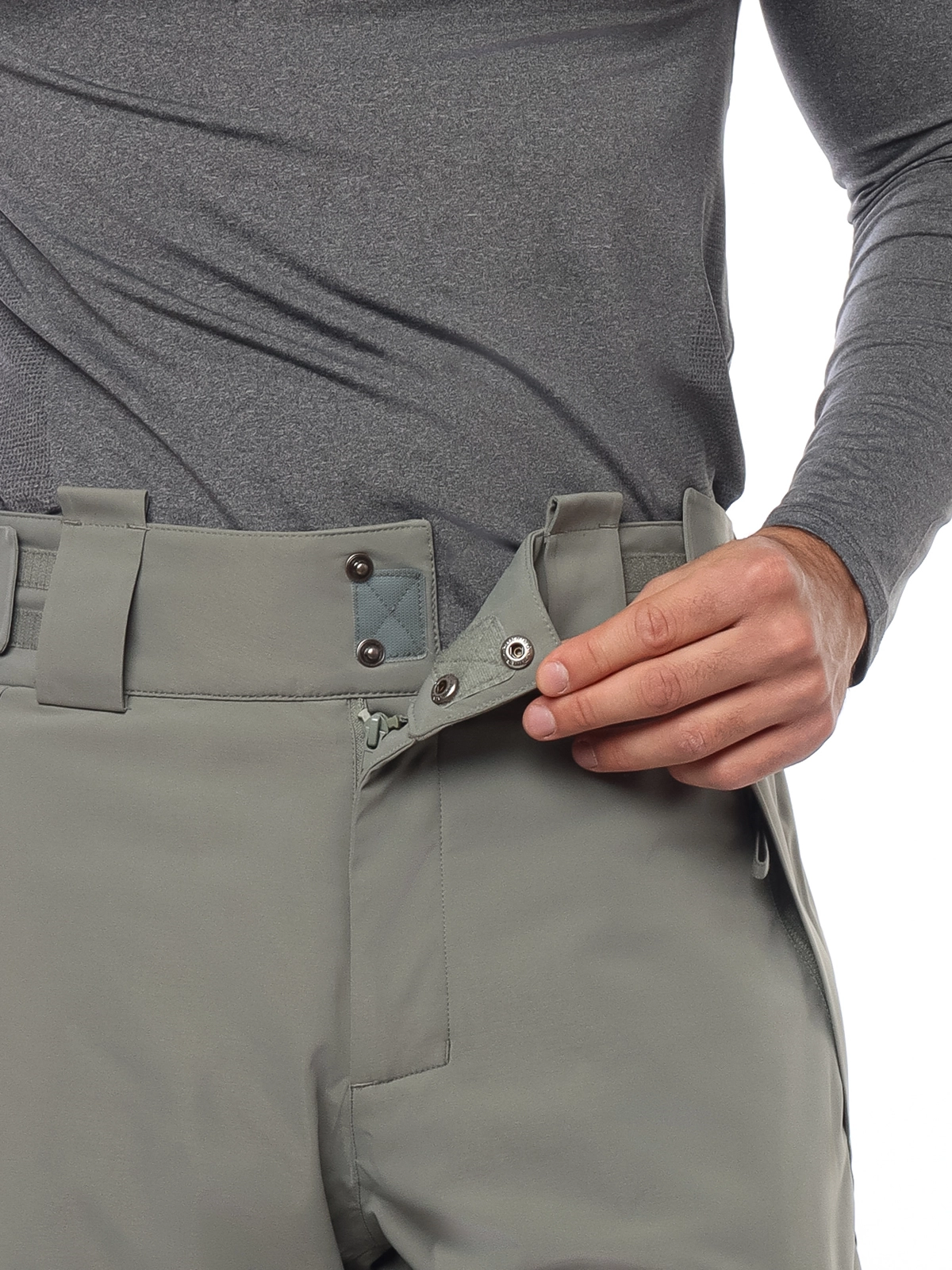 - Система регулировки ширины низа брючин на кнопках (позволяет подтянуть штанину, чтобы не наступать на нее при ходьбе без лыж);