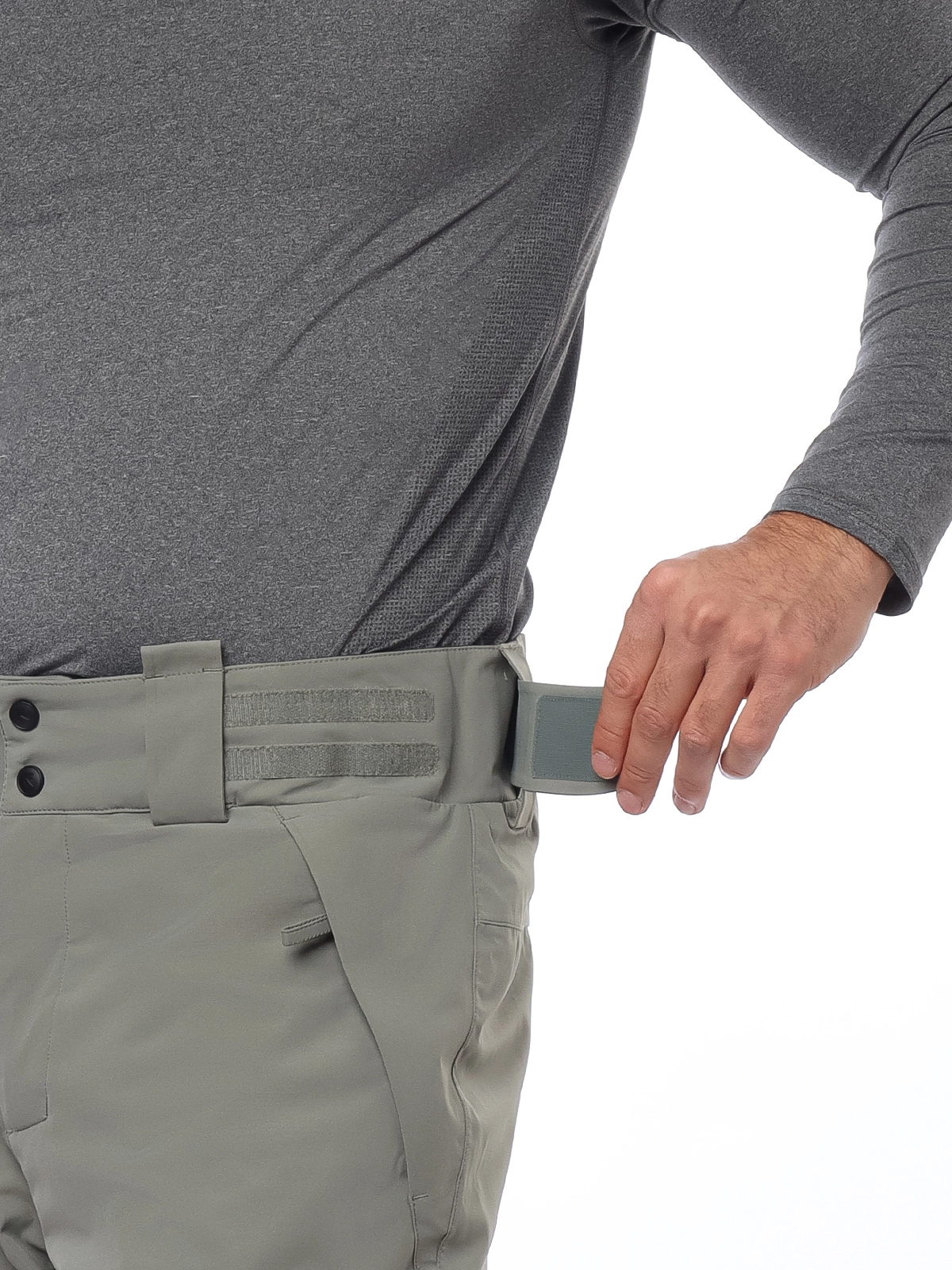 - Регулируемый пояс с эластичными вставками на липучках (по бокам) + шлевки для ремня;