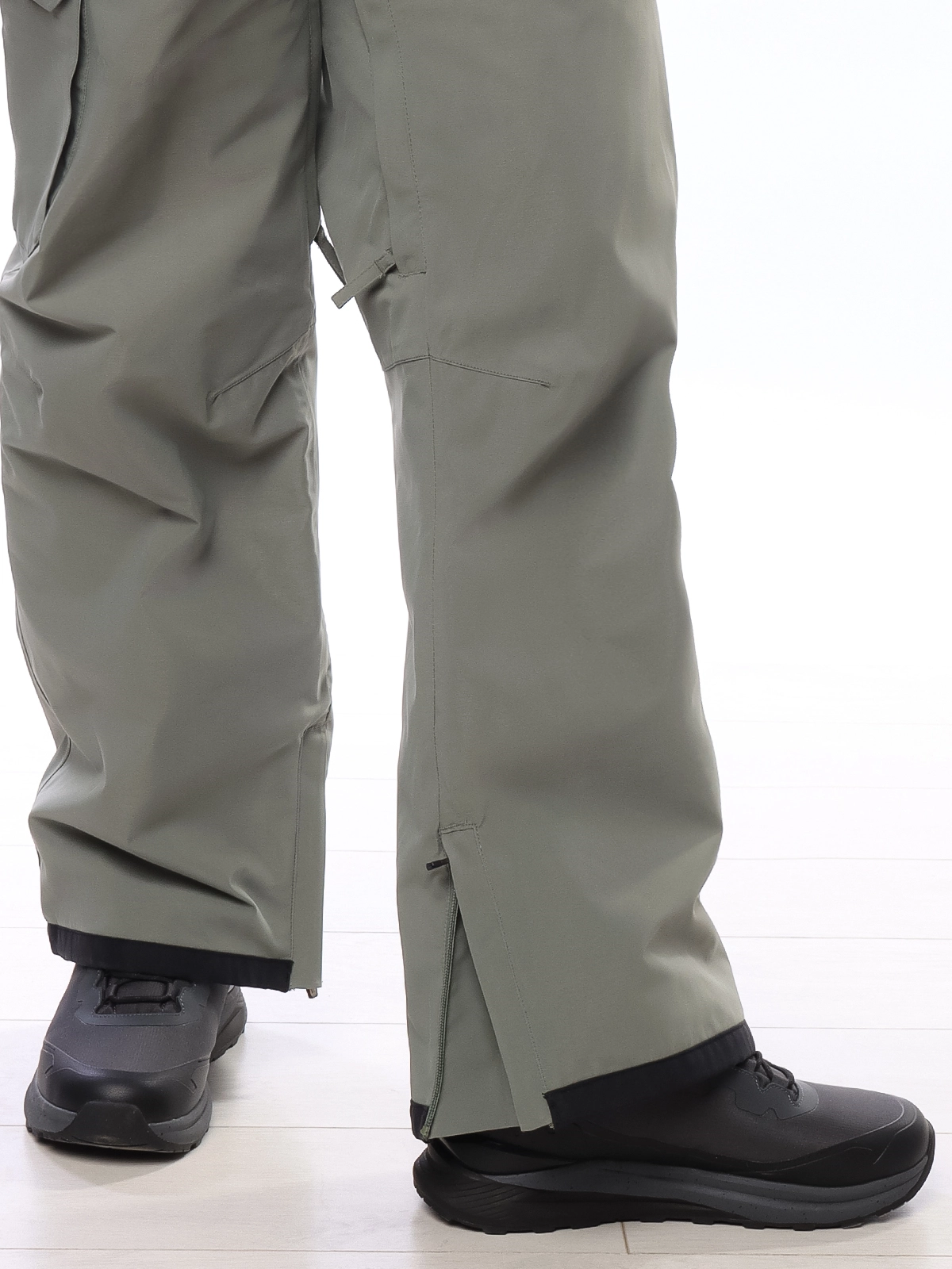 - Боковые молнии внизу брюк для удобства надевания поверх ботинок;
