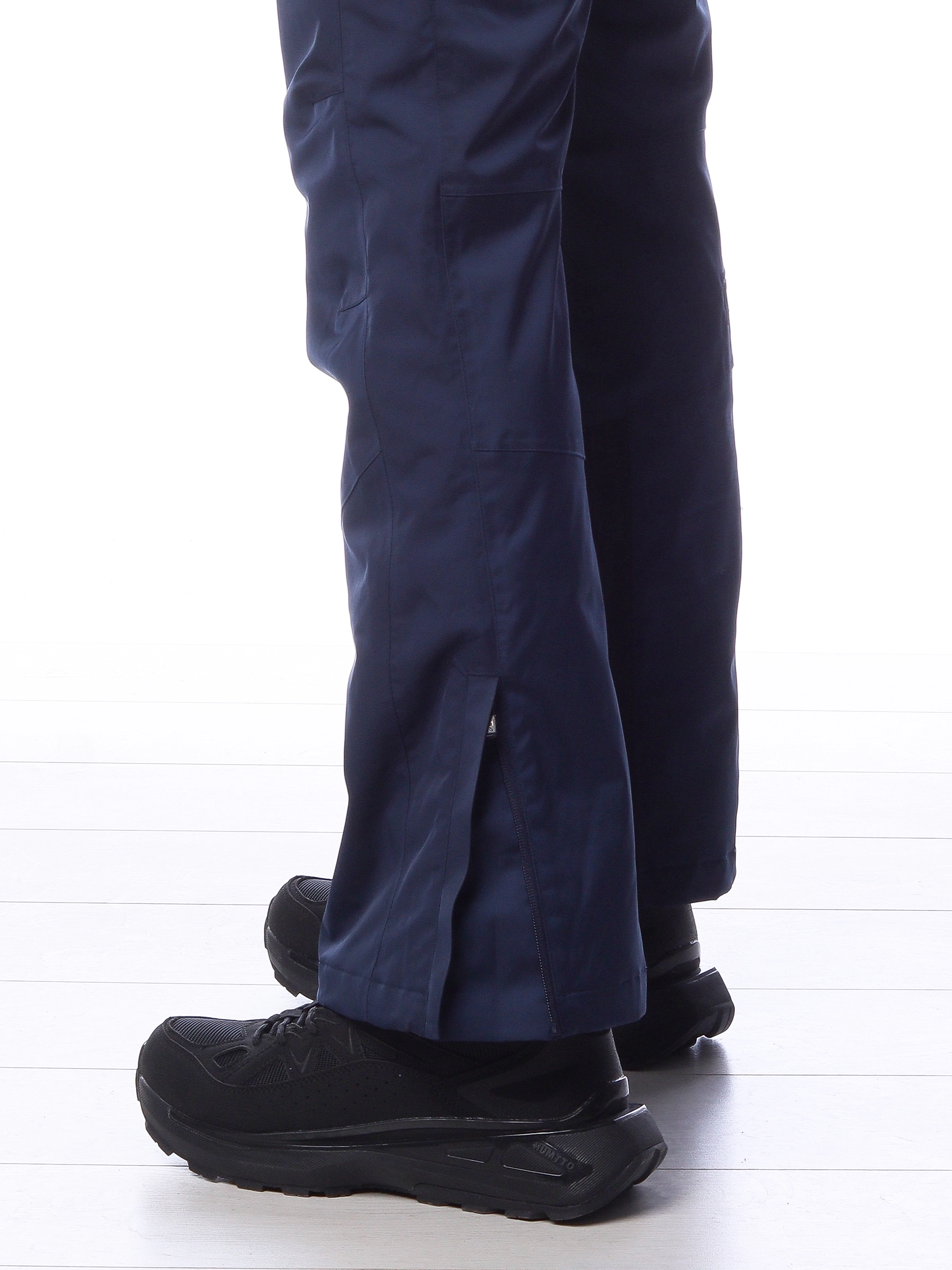 - Молнии внизу штанин для удобства надевания поверх горнолыжной обуви.