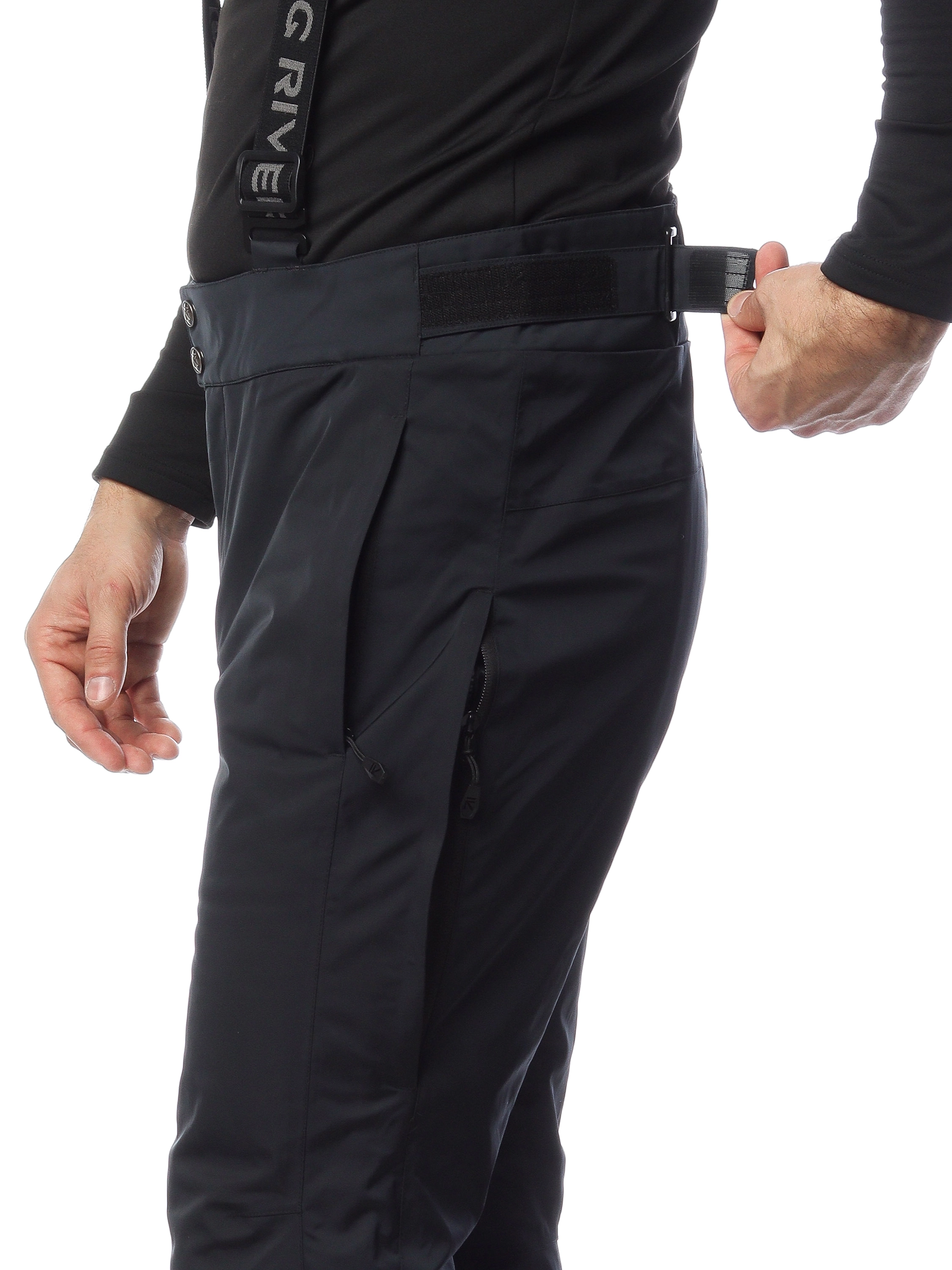 - Молнии внизу штанин для удобства надевания поверх горнолыжной обуви.