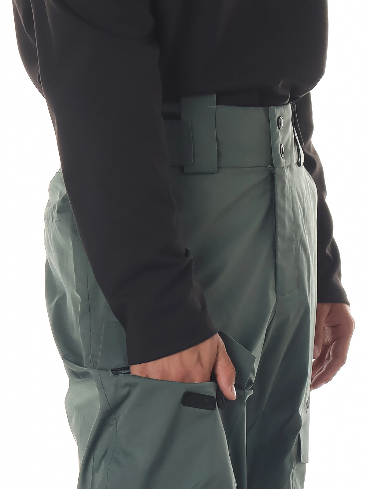 - Регулировка ширины низа брючин на кнопках (удобно для фиксации поверх ботинка или обуви);