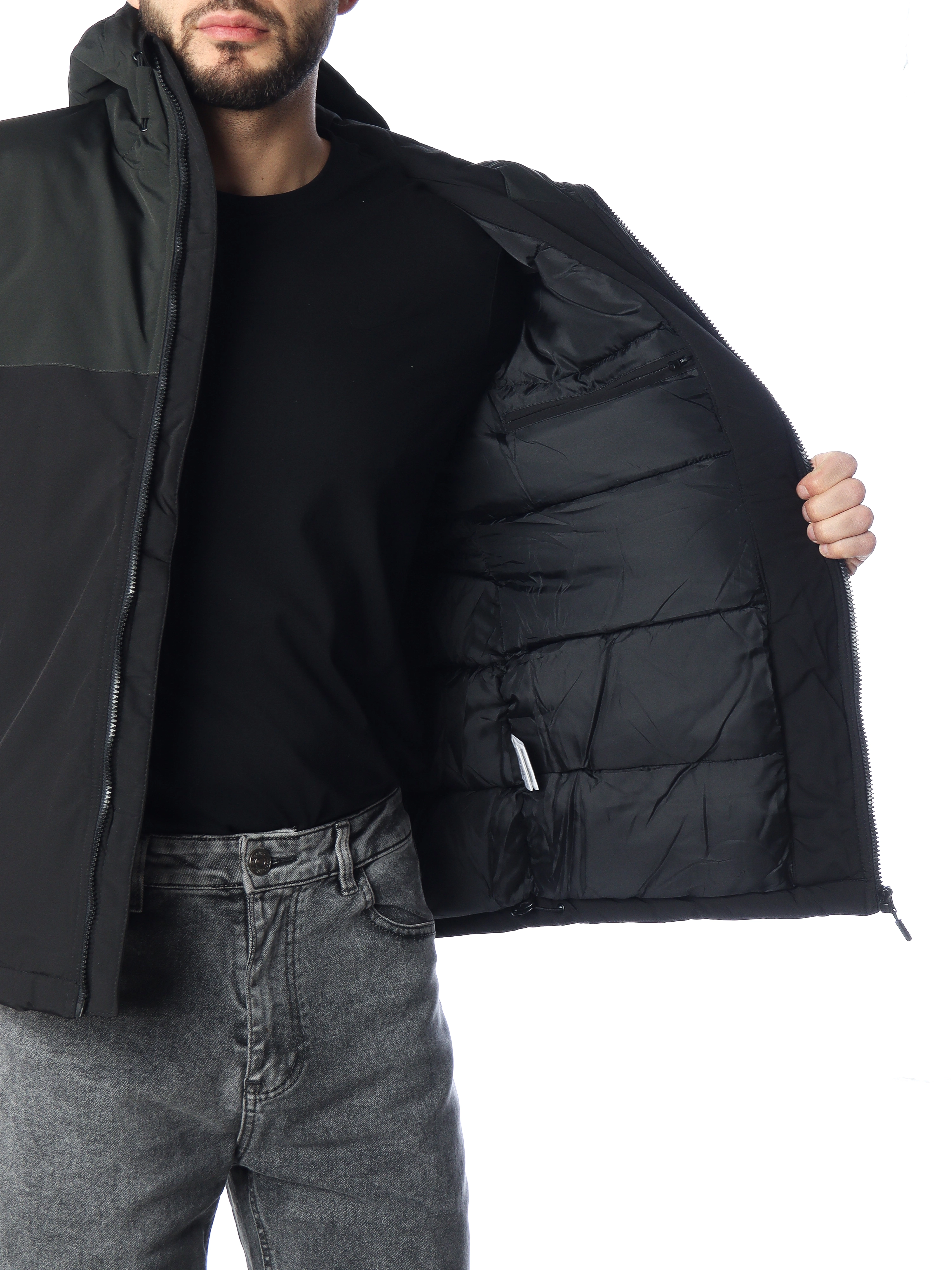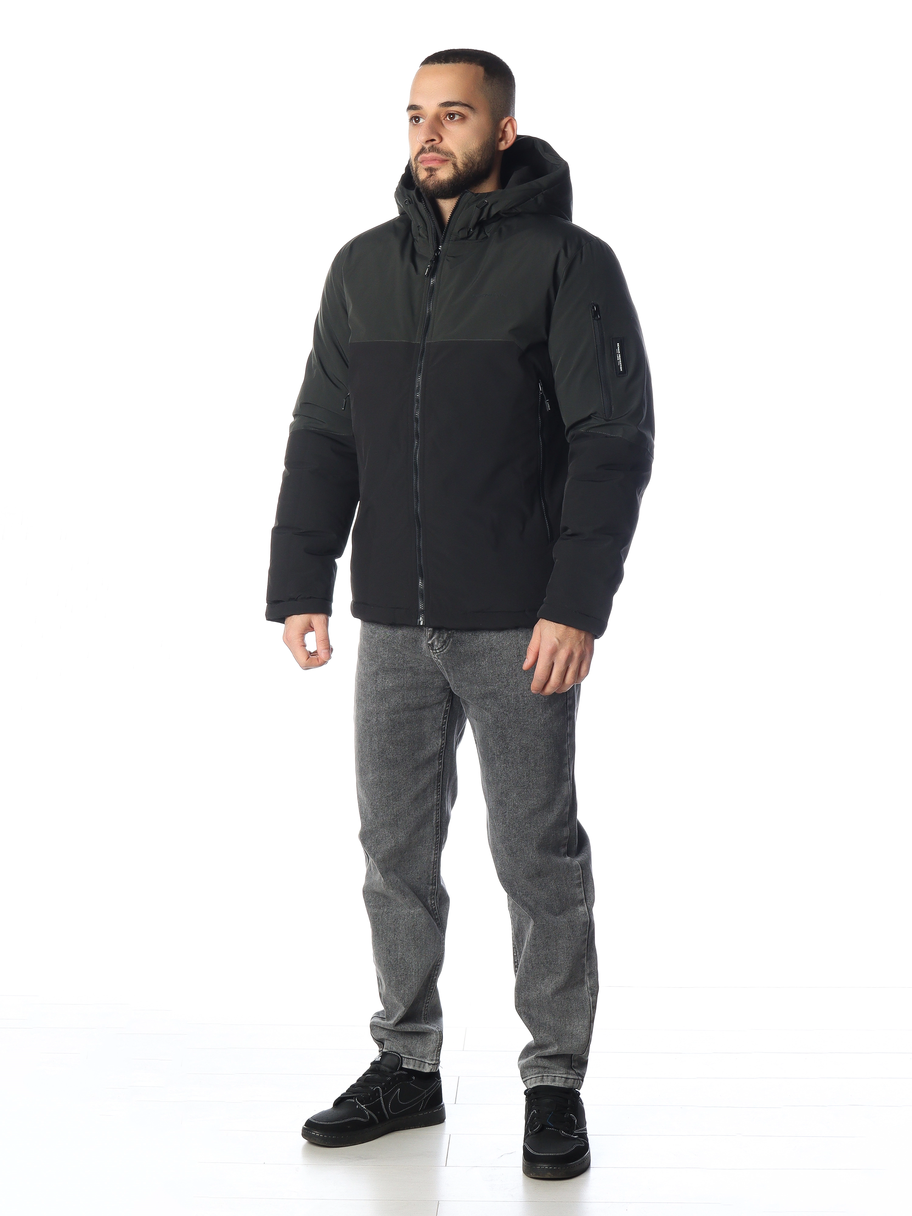 - Капюшон: съемный (на молнии), регулируемый по объему, с высоким воротом-стойкой для защиты шеи;